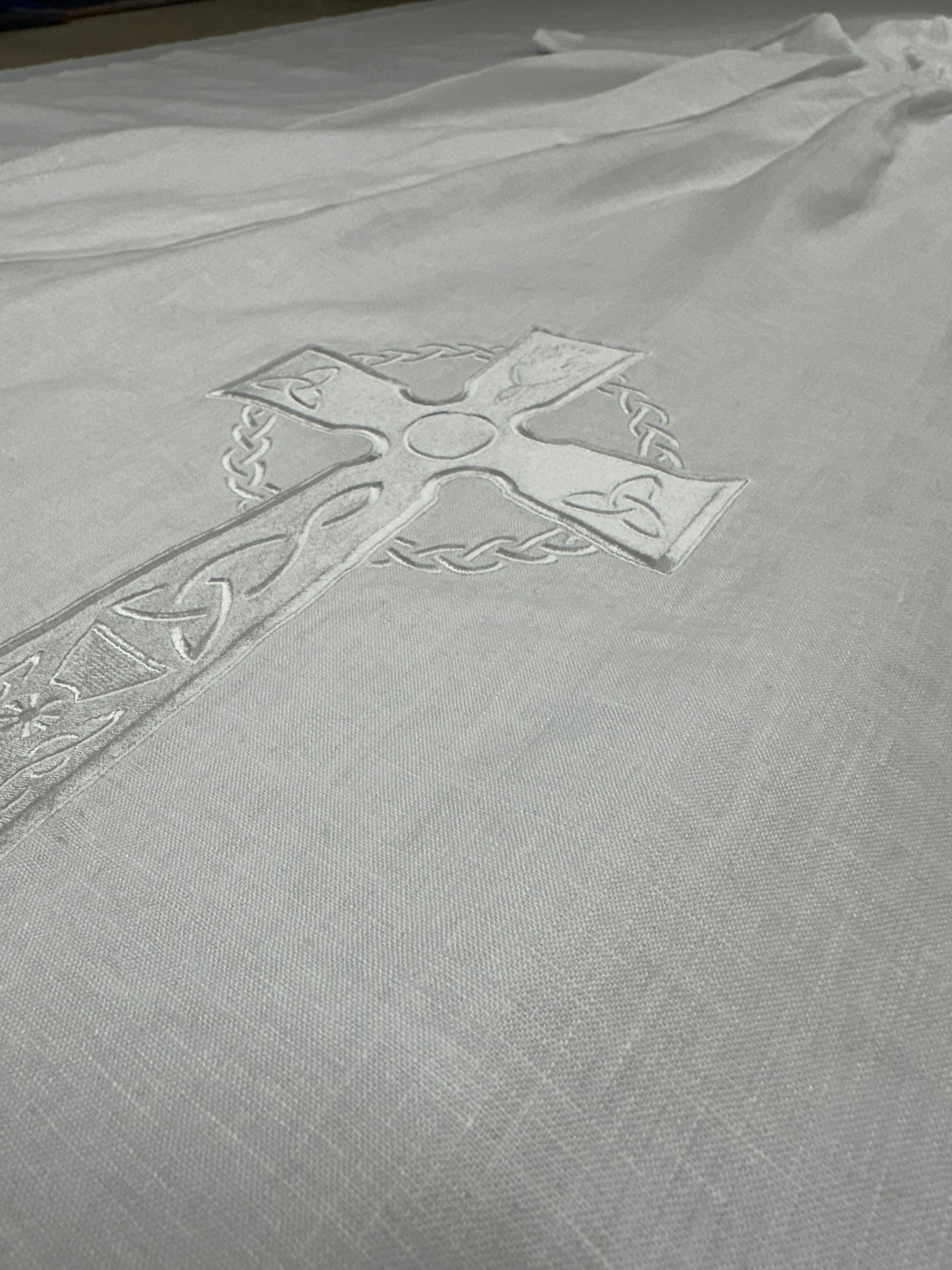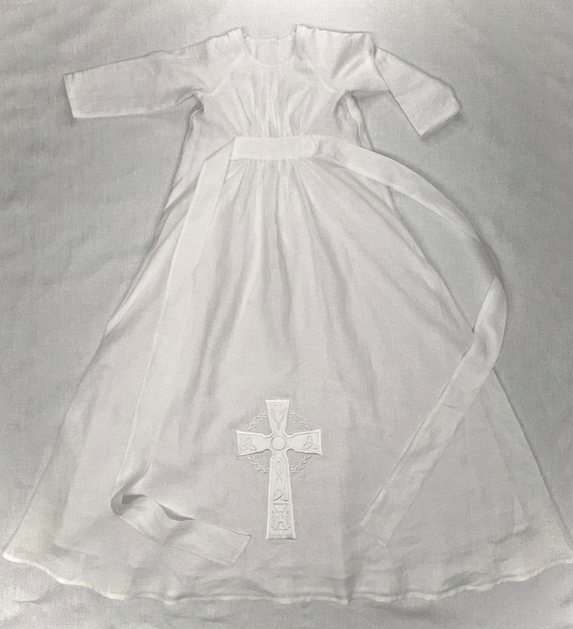 The Fionnuala Gown is made from pure Irish Linen and is embroidered with a stunning Celtic Cross. The design nods to vintage Irish styles, is fully lined for comfort for your wee one. A matching bonnet is available to complete the look.